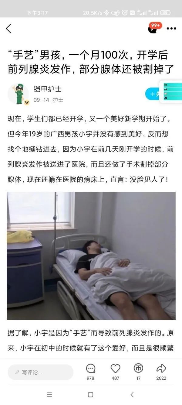 手艺男孩一个月100次开学后前列腺炎发作。