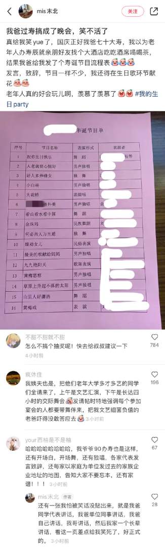 把过寿办成了晚会。