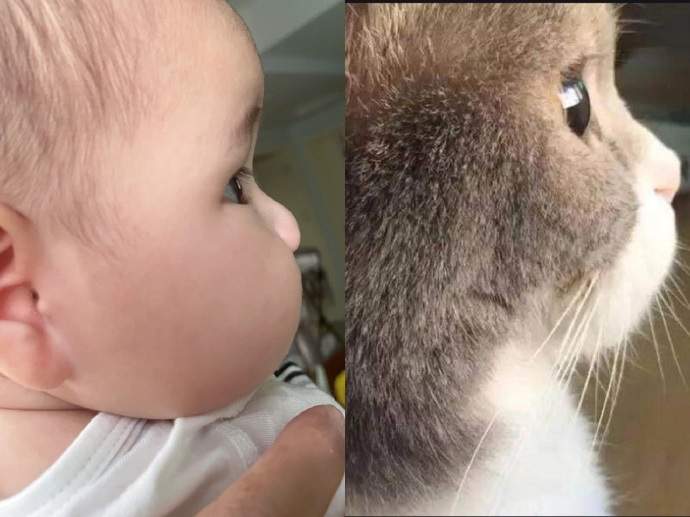 宝宝和猫猫就差一脸毛毛。