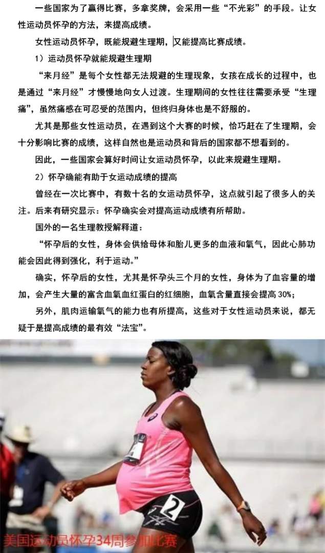 女性怀孕后不宜运动,却有国家让女性运动员在比赛前怀孕,为何?