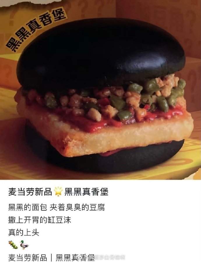 麦当劳推出新品黑黑真香堡,