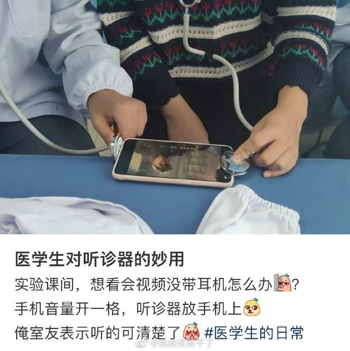 医学生对听诊器的妙用。